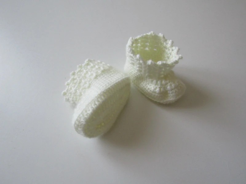 Chaussons bébé naissance réalisé au crochet avec une laine cachemire.