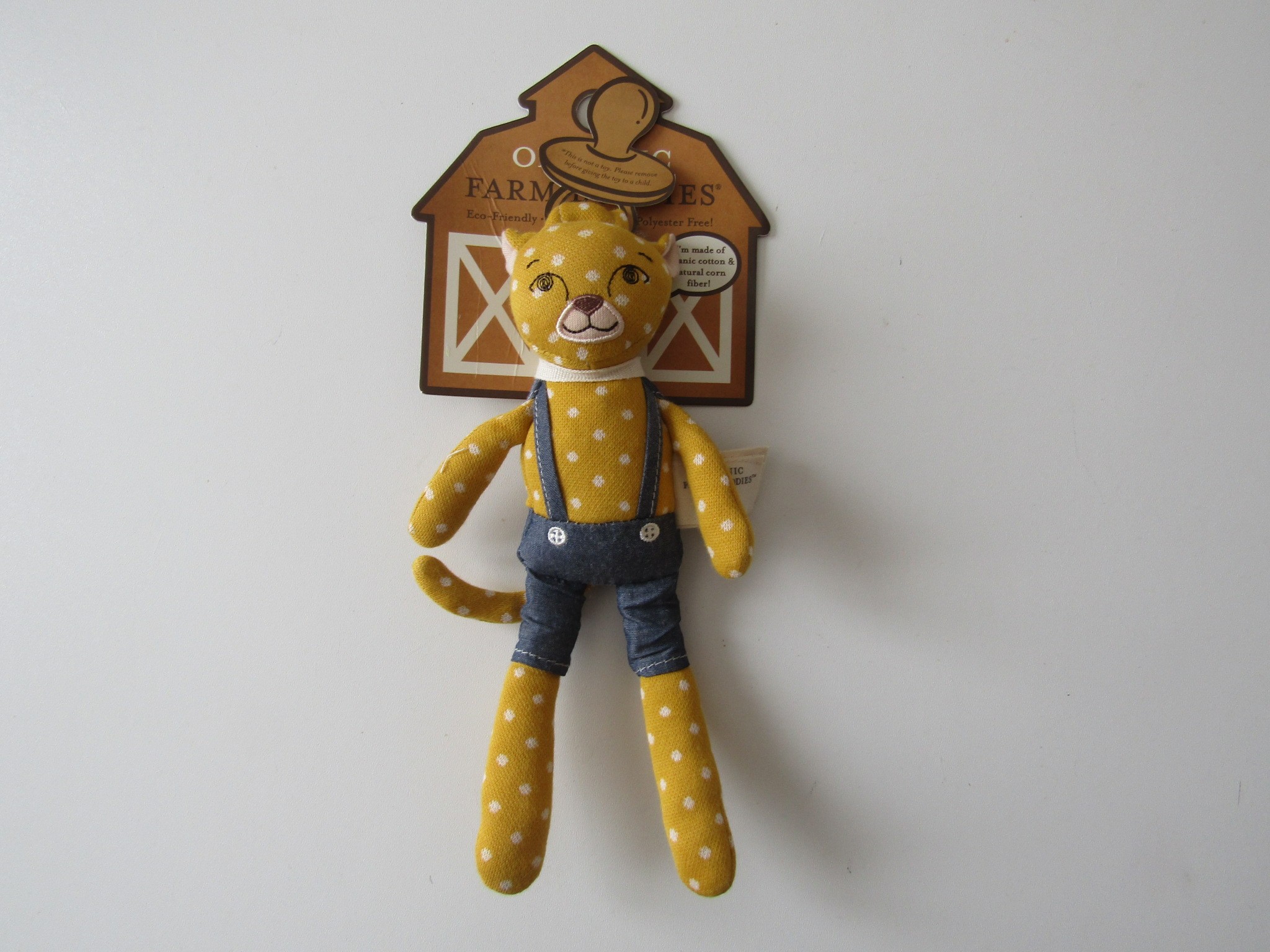 Une jolie peluche rigolote et originale avec sa tenue à pois en coton bio, qui gardera la sucette bien accrochée pour éviter les gros chagrins.
